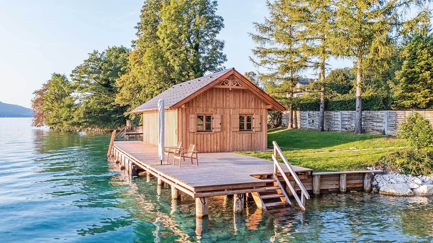 Ein herrlicher Spätsommertag am Attersee und wir freuen uns über das äußerst gelungene Bootshaus, das wir pünktlich zur Badesaison fertigstellen konnten 🙂 Das gesamte Gebäude inkl. der großen Steganlage wurde aus heimischem Lärchenholz errichtet. Alle ausführenden Unternehmen stammen aus der Region- nachhaltig Bauen ist möglich!