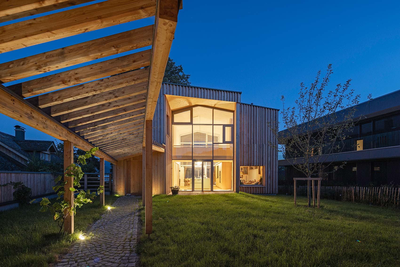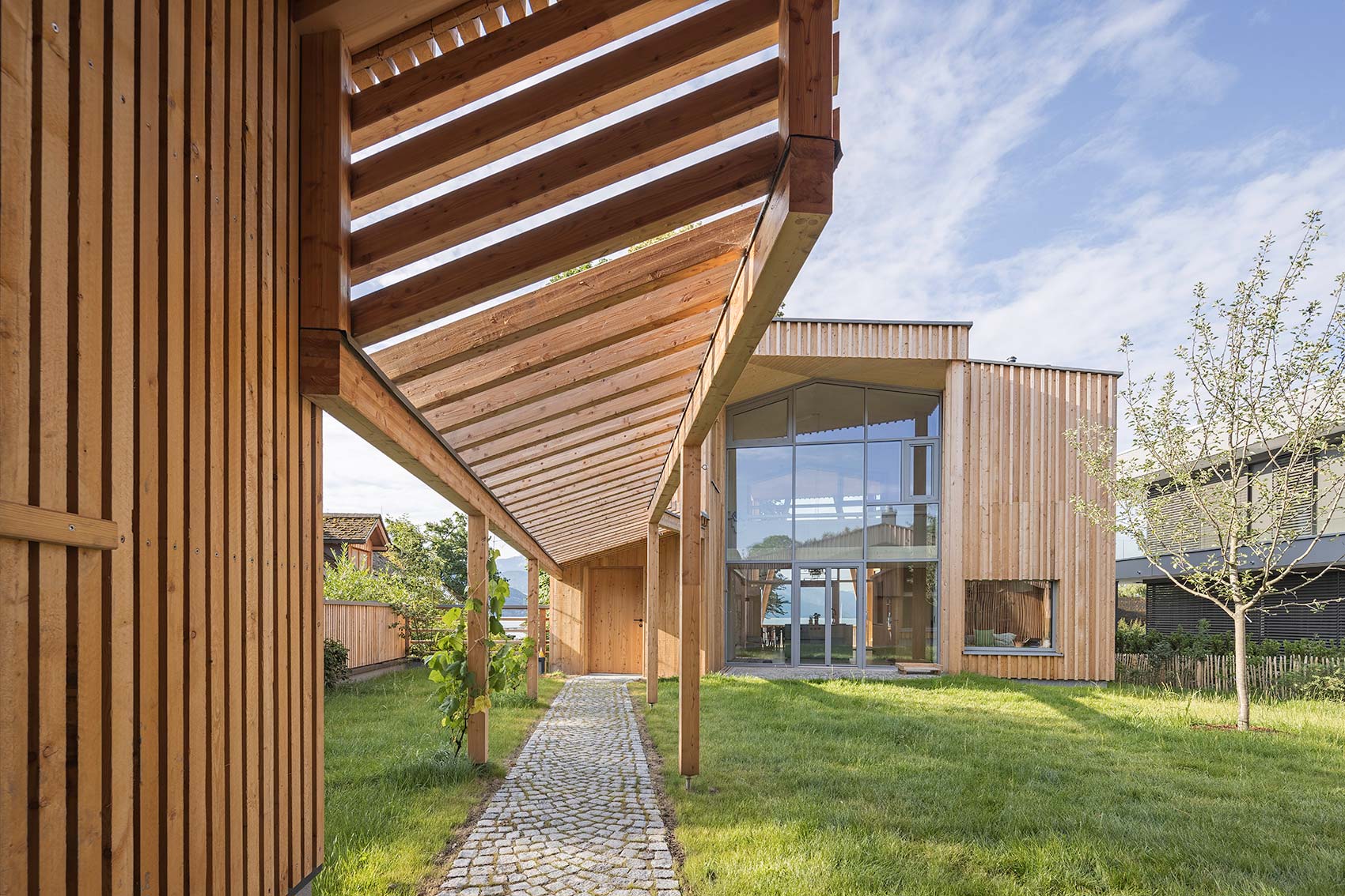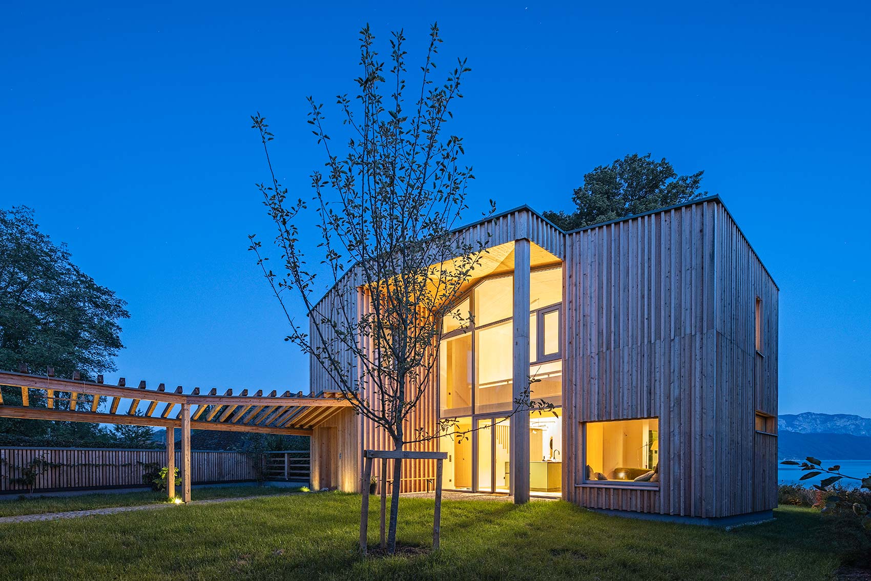 Am Ende eines Regenbogens findet man einen Schatz, so besagt es die alte irische Sage. Und in diesem Fall ist der Schatz aus Holz 😊 Gemeinsam mit Kleboth und Dollnig – Architektur durften wir an einem ganz besonderen Holzhaus, mit vielen spannenden Details, mitwirken. Das Haus wurde unmittelbar am Ufer des Attersees errichtet, welcher im ganzen Gebäude präsent ist. Bereits beim Betreten des Innenhofs blickt man durch das Haus hindurch auf das türkisblaue Wasser.